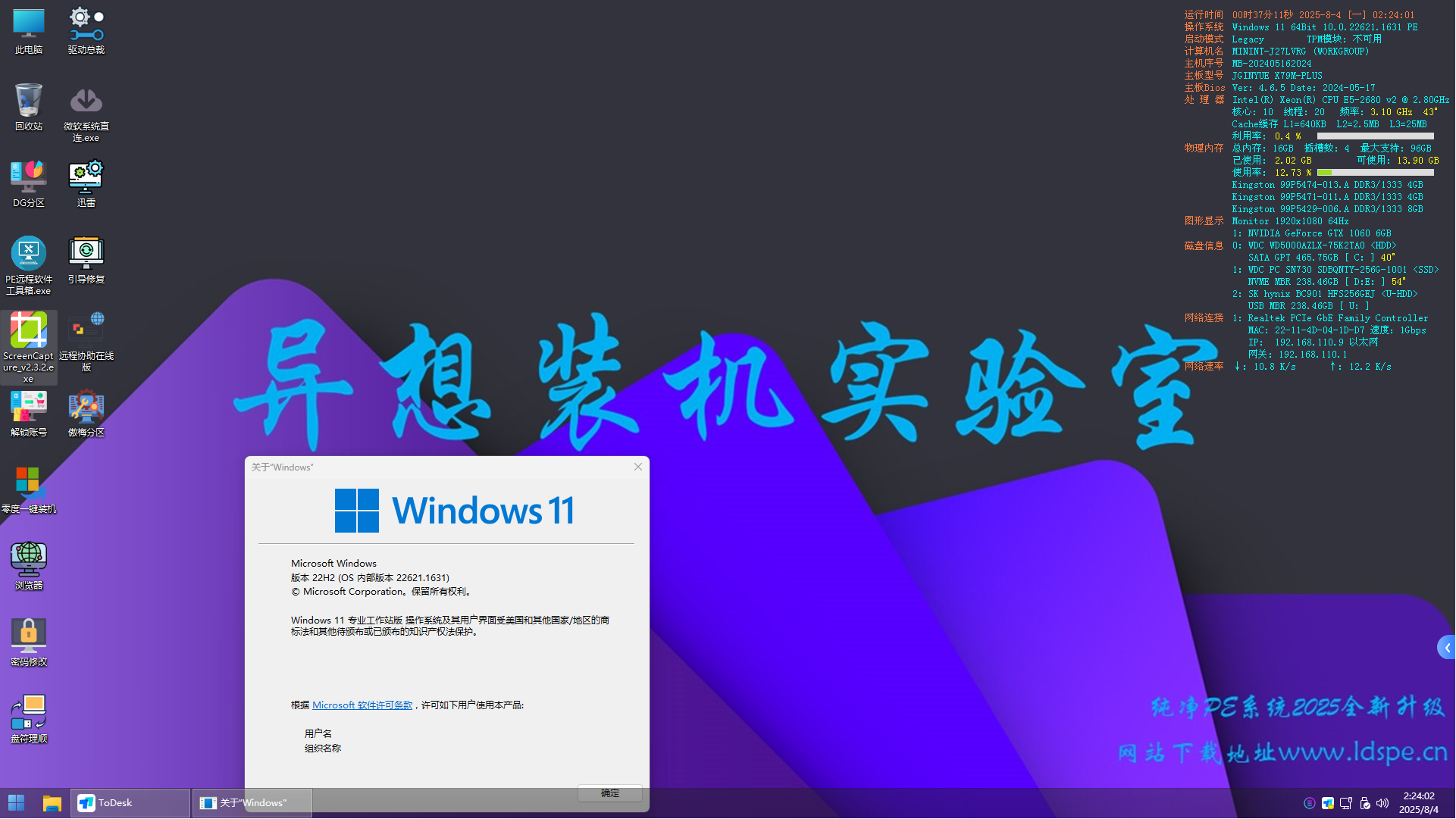 • 异想装机实验室PE维护系统内的源代码遵循MPL 2.0开源协议,请勿用作商业用途